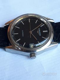 Originale longines ultronic cal6312 black dial con il famoso movimento a diapason esa 9162 al diapason 300 hz perfettamente funzionante revisionato da poco da un tecnico specializzato ;cassa acciaio misure 35mm escluso corona cinturino generico .