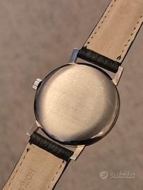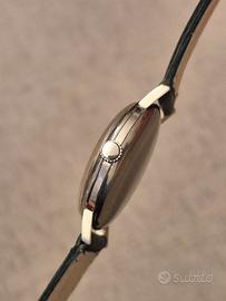 In vendita questo splendido ed elegante Longines vintage, un pezzo di storia dell'orologeria svizzera in condizioni di conservazione eccellenti. * Movimento: Il cuore dell'orologio è il celebre Calibro di manifattura Longines 30L. Recentemente pulito e oliato, marcia perfettamente. * Quadrante: Originale "Swiss Made" con finitura Soleil (a raggio di sole) e rara grafica Cross-Dial (linee a croce). Presenta una lievissima e uniforme patina del tempo che ne autentica l'età e conferisce un fascino vintage ineguagliabile. * Dettagli Dial: Logo a clessidra alata applicato, indici a bastone sottili e sfere (lancette) dorate a contrasto che garantiscono un'ottima leggibilità e un tocco di classe. * Cassa: In acciaio inossidabile con referenza 8903-1. Diametro 35mm Lug to lug 41mm Spessore 10mm Linee pulite, anse eleganti e fondello a pressione. La cassa è in condizioni ottime, priva di graffi profondi. * Fondello: Internamente rifinito con lavorazione perlage (a chicchi di riso) e riportante i marchi ufficiali Longines. * Dimensioni: Diametro classico ed elegante, perfetto per ogni polso e per contesti formali. Datazione: In base al numero di serie sul movimento (13.8xx.xxx), l'orologio è databile intorno al 1966-1967. Un'occasione rara per acquistare un Longines originale in queste condizioni, pronto per essere indossato o inserito in collezione. #longines #longines30l #vintagewatch #orologiovintage #swissmade #luxurywatch #calibro30l #crossdial #vintagelongines #longinesheritage #orologiodapolsovintage #mechanicalwatch #caricamanuale #watchcollecting #longinessteel #dresswatch #horology #vintagestyle #watchenthusiast #anni60
