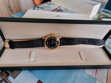 Vendo orologio perfettamente funzionante con movimento automatico calibro eta 2824. La cassa placcata in oro 20 micron misura 38mm esclusa corona logata, quadrante nero bitono, datario ad ore 6. Cinturino in pelle artigianale con fibbia originale logata. Orologio originale in tutte le sue parti quasi nos. Completo di scatola ma senza documenti. non spedisco, solo consegna a mano.