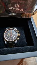 Elegante orologio Lorenz con funzione cronografo, unisce dettagli in oro e argento.