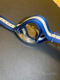 Bellissimo quadrante, color argente con riflessi all'interno e blu nella scala dei minuti esterna.