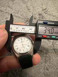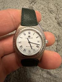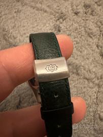 Orologio Lorenz SWISS MADE con movimento quarzo Swiss molto preciso, cinturino originale in pelle verde, fibbia originale,vetro in cristallo antigraffio senza segni..condizioni pari al nuovo.