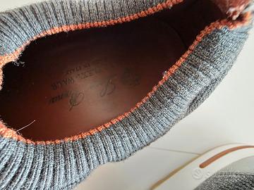 Vendo un paio di splendide sneakers Loro Piana '360 Flexi Walk' Carbon Knit, autentiche Queste scarpe sono state indossate solo due volte e sono praticamente nuove. Sono state tenute con estrema cura e non presentana seqni di usura visibili sulla tomaia in maglia di carbonio ultra-leggera. Misura: EU 42 Colore: Grigio Scuro/Carbone con suola bicolore (bianco e qum) Dettagli: Tallone in pelle con passante Lorc Piana, suola carrarmato bicolore in gomma naturale e bianca. II sottopiede interno mostra la dicitura "360 FLEXI WALK - MADE IN ITALY" Condizione: Indossate due volte, ottime condizioni (vedi foto dettaqliate) Fornite senza scatola Scarpe estremamente leggere e comode perfette per un look casual-eleaante Fabbricate in Italia