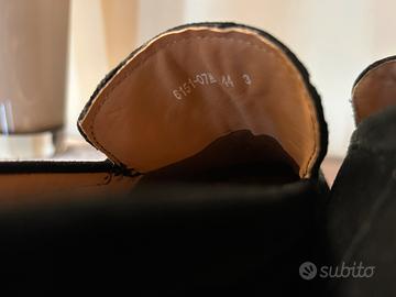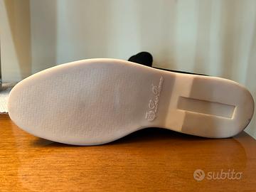 Brand Loro Piana Taglia 44 Colore Nero Condizione Buone condizioni Descrizione Vendo mocassini/slip-on neri in suede, taglia 44, modello casual molto comodo e versatile. Presentano suola bianca a contrasto e soletta interna removibile inclusa. Usati ma in ottime condizioni generali, con normali segni di utilizzo visibili nelle foto: * lieve usura sulla tomaia e sui bordi * interni in ordine * suole in ottimo stato * solette presenti Ideali per look casual, estivi o smart casual. Per misure o foto aggiuntive scrivimi pure Non dispongo di scatola