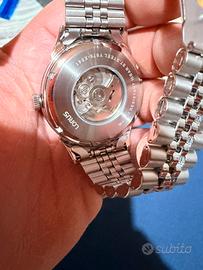 Orologio Solo Tempo Da Uomo Di Lorus Della Collezione Classic. Orologio Solo Tempo Con Cassa In Acciaio Inossidabile Di 43 mm E Quadrante Decorato Con Motivo Sunray. Lunetta Zigrinata. Il Fondello È Con Movimento A Vista. Il Bracciale È In Acciaio Inossidabile. La Resistenza All'Acqua È Di 10 Bar. Orologio Con Movimento 3 Sfere, Automatico, Funzione Datario Con Giorno/Data come nuovo mai usato accetto proposte