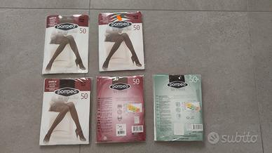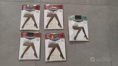 Vendo diverse paia di collant e gambaletti nuovi, mai usati, buste chiuse (alcune hanno ancora il prezzo originale), colori come da singola foto. Tutte taglie I-II. Il prezzo si riferisce a tutte le 25 paia (lotto intero); possibilità di acquistare singolarmente o più pezzi - contattarmi per altri dettagli. Spedizione o ritiro a mano in zona