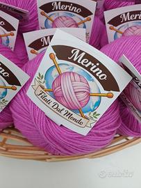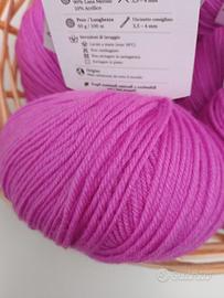 LOTTO 10 GOMITOLI LANA MERINO COLORE ROSA FUCSIA MARCA " FILATI DAL MONDO " OGNI GOMITOLO PESA 50 G PER 100 M TOTALE 500 GR UNCINETTO E FERRI N. 3,5/4 mm QUALITÀ SUPER MORBIDISSIMI NUOVI CON CARTELLINO consegno a Roma zone Anagnina Romanina tor vergata