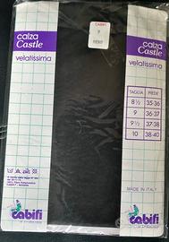 STUPENDE CALZE DA REGGICALZE VINTAGE DI QUALITÀ SUPERIORE ELEGANTISSIME ALTA CLASSE -marca CABIFI modello CASTLE Made in italy 1970 -composizione: 100% NYLON -caratteristiche: CALZE pregiate in 13 DEN VELATISSIME molto eleganti con balza alta decorata , setose al tatto, con punta rinforzata velata e TALLONE NUDO. qualità eccellente del filato in puro nylon ottima resistenza.