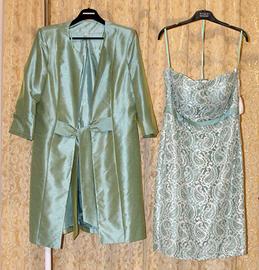 Lotto di 100 abiti da cerimonia per madri, damigelle, testimoni o per serate di gala / cocktail provenienti da chiusura negozio dal prezzo al dettaglio di circa 50000?; le taglie spaziano tra la 37 e la 58, con la maggioranza che varia tra la 46 e la 52.