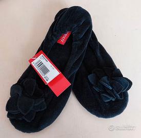 1 Pantofole ballerine in vellutino nero, con fiore/coccarda applicato.