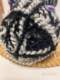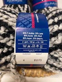 Il filato è caratterizzato da una bellissima sfumatura multicolore sui toni del nero e bianco.