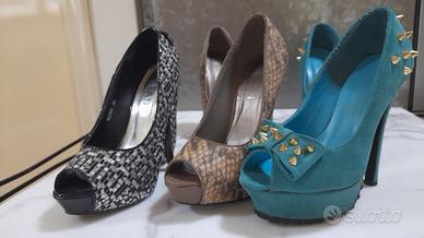 Vendo 3 paia di scarpe originali ed eleganti stile anni 90, tutte di Misura n 37 il tacco è di 13cm. Usate solo 1/2 volte il tacco è ancora intatto e originale. Le scarpe sono tenute benissimo, ideali per chi ama lo stile vintage di qualità. Valuto anche la vendita singola .