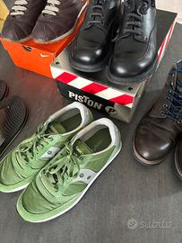 LOTTO 4 PAIA SCARPE DA UOMO + PAIO INFRADITO, IN OTTIME CONDIZIONI , SNEAKERS SAUCONY JAZZ NUMERO 43 SNEAKERS NIKE CORTEZ NUMERO 42 SCARPE PISTON IN PELLE NUMERO 40 ( MA È UN 41 ABBONDANTE) SCARPE CONTE’ IN PELLE NUMERO 41 INFRADITO OLAIAN NUOVE, MAI USATE, 41