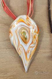 Lotto 7 collane in vetro, plastica, pietre, macram