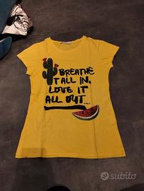 Maglietta gialla con stampa cactus e scritta motivazionale.