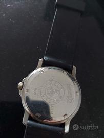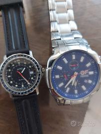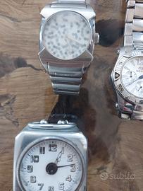 l lotto comprende: Eberhard & Co. Regolo Master Royal Quartz: Modello tecnico di lusso con regolo calcolatore. Quadrante nero, cassa in acciaio 38mm. (Da solo ha un alto valore collezionistico). funzionante Sveglia Svizzera Meccanica: Pezzo vintage da viaggio con carica manuale (scritte "Wecker/Uhr" sul retro). Cronografo Breil: Interamente in acciaio con bracciale originale. Breil Manta: Modello sportivo con ghiera tachimetrica. Orologio Maserati: Elegante con cinturino in pelle marrone. Cronografo GF Ferré: Quadrante blu e bracciale in acciaio. Orologio Vintage cassa ottagonale: Cinturino in pelle lavorata. Orologio da donna dorato: Stile classico a maglia fine. Condizioni: Gli orologi sono da considerarsi da revisionare/ripristinare. Sono rimasti fermi per anni e necessitano del cambio batteria (per i modelli al quarzo) o di una pulizia/controllo meccanico. L'Eberhard presenta graffi sul vetro e una piccola scheggiatura a ore 3, ma il quadrante è perfetto e funzionante La sveglia è meccanica e necessita di essere testata. Vendo esclusivamente in blocco unico.