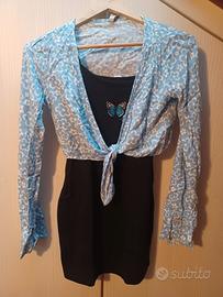 1 coprispalle azzurro fiori bianchi maniche lunghe a campana tg.xxs;