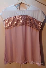 1 camicetta lunga dettagli pailettes rosa e bianco tg.140 cm;