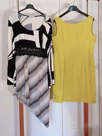 Lotto abbigliamento donna elegante Taglia 50 IT - Ottime Condizioni - Mirella Ferretti: Abito dal taglio asimmetrico bianco e nero, raffinato motivo a pois con elegante inserto in pizzo in vita. - Cannella: Abito smanicato verde cedro, taglio moderno sopra il ginocchio. - Completo Business/Chic: Blazer doppiopetto Bershka abbinato a gonna longuette Alcott. - Ulla Popken: Camicia tunica in pregiato raso con delicati ricami. - Kiabi: Abito midi in simil-seta con romantica fantasia floreale. - Blusa Evergreen: Modello con colletto e motivo a righe orizzontali (toni terra e bosco). Condizioni: I capi sono in condizioni ottime, trattati con cura e usati pochissimo. Alcuni pezzi sono nuovi, mai indossati. Prezzo regalo per realizzo immediato e sgombero armadio!
