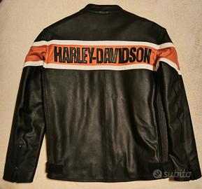 Giacca Biker Harley-Davidson (M): 100% vera pelle. Design iconico nero/arancio con logo sulla schiena. €220