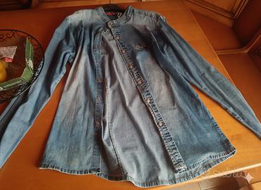 2 Camicie Cotton & Silk: Stile denim/lavato. Una presenta il moderno collo alla coreana con raffinata fettuccia interna a contrasto lungo i bottoni.