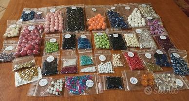 Vendo per motivi di salute, materiali nuovi, mai utilizzati per bigiotteria: perle, perline, legno, distanziatori, ciondoli, moschettoni, catene e fili per collane, anelli, orecchini, ganci e gancetti, terminali ecc, è tutto nelle foto. Alcuni materiali sono ancora nella loro confezione originale, altri solo messi nelle scatole blu. Sono circa 8 kg netto di materiale. Consegno così come in foto.