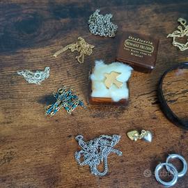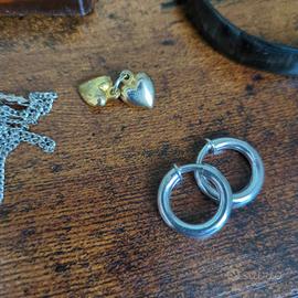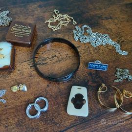 Lotto bigiotteria vintage collane orecchini spille bracciali ciondoli. Lotto di bigiotteria vintage composto da catenine, orecchini, ciondoli, spille, bracciali e braccialetti. Materiali vari. Condizioni come da foto, con segni del tempo e uso. Vendita solo in blocco, esattamente come visibile in foto. Spedizione con imballaggio accurato o possibilità di ritiro a mano a Varese o a Milano.