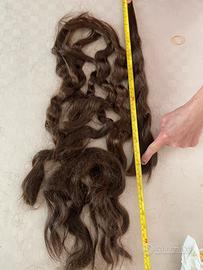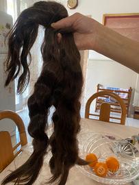 Oggetto: Treccia di capelli veri naturali (provenienza familiare). Caratteristiche principali: Qualità: Capelli vergini, mai sottoposti a trattamenti chimici, tinte o calore eccessivo (phon/piastre dell'epoca). Lunghezza: Circa 85-90 cm, una misura eccezionale e difficile da reperire. Peso: 130 grammi, quantità ideale per un lavoro completo di extension di lusso o per la creazione di una parrucca artigianale di alta qualità. Colore e Texture: Castano naturale con riflessi caldi. Il capello presenta un'ondulazione naturale (natural wave) morbida e sana. Stato: I capelli sono stati conservati con estrema cura in una treccia, mantenendo la cuticola integra e la lucentezza originale. Un pezzo unico per professionisti del settore, collezionisti o per chi cerca il massimo della qualità naturale.