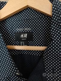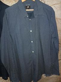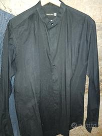 Lotto composto da tre camicie da uomo. - Una camicia a tinta unita nera. - Una camicia a fantasia puntinata bianca su fondo nero. - Una camicia nera con colletto alla coreana.