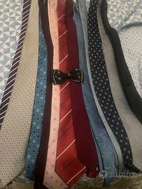 Vengo splendida collezione di 10 cravatte da uomo e 1 raffinato papillon. Il set copre ogni esigenza: dal look professionale per l'ufficio agli eventi più eleganti e cerimonie. Tutti i pezzi sono in ottime condizioni, senza macchie o segni d'usura. 💰 PREZZI E DETTAGLI: SET COMPLETO (Affare): €55,00 (risparmi oltre il 40% sul valore totale!) SINGOLI PEZZI: Fascia A - €10,00 (Modelli Premium/Lavorati): Cravatta azzurro polvere con elegante motivo Paisley (damascata). Cravatta bordeaux a trama larga con righe diagonali (Power Tie). Papillon nero con esclusivi ricami dorati "MR". Cravatta argento/grigio con pattern geometrico a rilievo. Fascia B - €8,00 (Modelli Classici/Business): Cravatte a micro-pattern (puntinate o quadratini) blu, azzurre e rosa. Cravatte a righe sottili regimental. Cravatte grigie e antracite in tinta unita testurizzata.