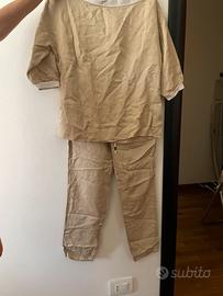 - set in lino beige pantaloni e maglia a mezza manica Benetton