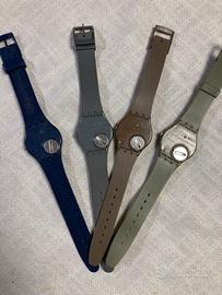 Vendo 4 swatch gent quarz tre con quadrante con numeri ed uno blu con ingranaggi a vista. Vendo per inutilizzo. Perfettamente funzionanti. Venduti senza pila e confezione originale. Formula visto e piaciuto. Non accetto resi.