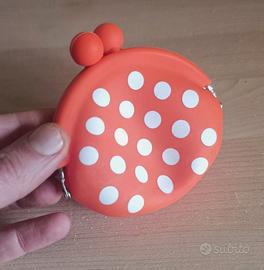 - Portamonete arancione a pois bianchi