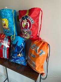 Vendo sacche in tessuto leggero, perfette per scuola, palestra, piscina o tempo libero. Tutte nuove o in ottimo stato!