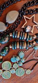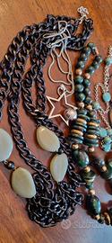 Lotto di gioielli composto da 5 collane miste vintage anni '70, '80, '90. Sono di varie lunghezze e materiali. Potete chiedere altre informazioni e foto se ne avete bisogno.