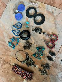 Lotto set maxi x 15 pezzi di bigiotteria orecchini ciondoli bracciali tutto esattamente come in foto. Rasta,Etnici e con pietre fatti a mano. Mai usati ottimox x reselling.