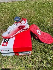 Scarpa tennis donna marca LOTTO modello MIRAGE 100 per tutte le superfici colore bianco e rosso taglia 41.