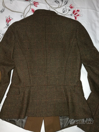 La Giacca Zara è di lana con toppe sui gomiti, modello avvitato.