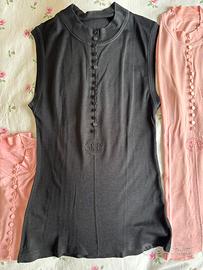 Lotto di n. 3 magliette Gianfranco Ferrè originali, taglia 44 donna, senza maniche, cotone, ottime condizioni, due rosa e una nera, usate pochissimo. Il prezzo si riferisce al lotto intero. Consegno a Roma zona Ponte Milvio o spedisco con tuttosubito.