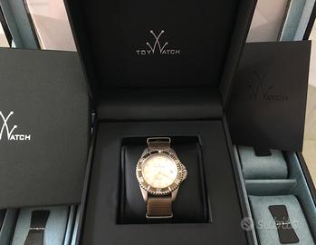 1 - toywatch tipo submariner, completo di scatola e pari al nuovo, cinturino nato, quadrante bianco, ghiera verde, movimento quarzo. Batteria nuova appena cambiata.