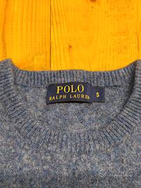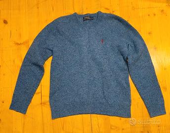 - Maglione pesante girocollo Polo Ralph Lauren blu 100% lana di agnello, taglia S.