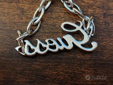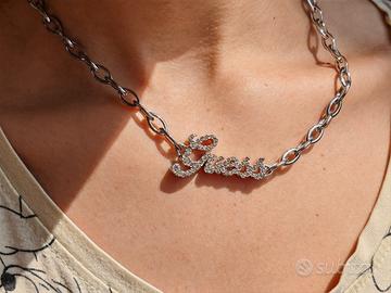 - Collana 2 (Scritta Strass): Buone condizioni, con leggera ossidazione sulla scritta come da foto. Lunghezza 36-44 cm.