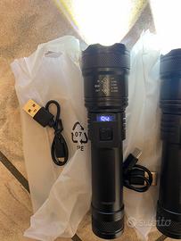 Lotto di 3 Torcie Led con display intelligente ad alta potenza. Nuova mai utilizzata con cavo ricarica Ottimo prodotto potenza 2000 LM + zoom