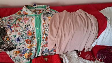 Vendo lotto vestiti da donna taglia L/M diverse Marche, pantaloni di tuta, jeans, felpe, abiti da sera, vestitini estivi. Tutto quello che c'è in foto (compreso vestito elegante Maria Grazia Severi taglia 42). Circa 25 capi di vestiario.