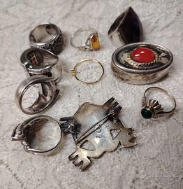 10 pezzi, tutti in argento Anelli in argento con pietre preziose e semi preziose Portapillole in argento 800 con spoletta di corniola VISTO E PIACIUTO Disponibile per altre foto I miei annunci sono pubblicati anche altrove