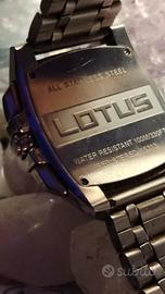 Questo è un orologio cronografo Lotus in acciaio inossidabile con quadrante rosso.
