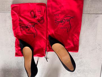 Christian Louboutin usate poche volte. Numero 38,5 Linea So Kate Tacco 12 cm Colore nero Materiale camoscio Scatola e dust bags originali. Presenti anche tacchi di ricambio originali e lettera originale d’acquisto.