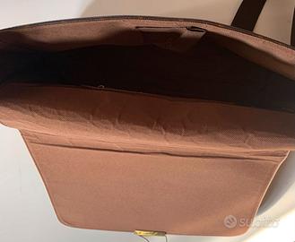 Fodera interna in tela marrone con una tasca con zip (DA SOSTITUIRE)e una tasca porta cellulare.