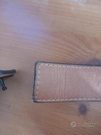 Vendo cintura Louis Vuitton originale, modello con fibbia iconica LV in metallo e fascia in tela Monogram (esterno scuro con motivo, interno in pelle marrone chiaro).