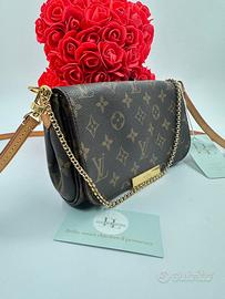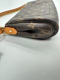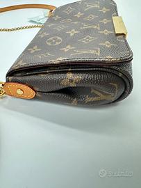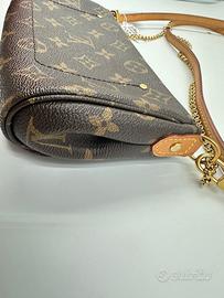 Louis Vuitton Favorite PM – Monogram Canvas | Crossbody & Clutch Borsa Louis Vuitton Favorite PM in monogram canvas, una delle silhouette più versatili della maison: si porta a tracolla con la catena dorata, a spalla con la tracolla in pelle naturale, oppure a mano come clutch. Doppio utilizzo, un'icona senza tempo. Dettagli tecnici Brand: Louis Vuitton Modello: Favorite PM Materiale: Monogram Canvas Fodera: Tessuto bordeaux Hardware: Dorato (placca LOUIS VUITTON PARIS) Chiusura: Zip superiore Tracolla: Catena dorata + tracolla in pelle vachetta naturale (rimovibile) Misure indicative: 26 x 14 x 4 cm Numero di serie: 1465182 Made in: France Condizioni: Buone – Grado B La borsa presenta segni d'uso compatibili con un pezzo vissuto: Canvas con normale usura diffusa Angoli del fondo con sfregatura visibile Vachetta con ossidazione naturale e segni d'uso sui bordi Hardware in buone condizioni Interno in tessuto bordeaux in ordine Nessun danno strutturale. Condizioni onestamente documentate nelle foto. Autenticità garantita Ogni articolo Etoilux viene verificato e documentato individualmente. L'autenticità è garantita a vita. Vendita con piena responsabilità professionale. Spedizione e pagamenti Spedizione rapida e sicura in tutta Italia. Reso gratuito entro 3 giorni dal ricevimento se l'articolo non corrisponde alla descrizione. Pagamento con bonifico, PayPal o rate su richiesta. Prezzo: €1.390 Pezzo per chi cerca il carattere del Monogram autentico a un prezzo accessibile.